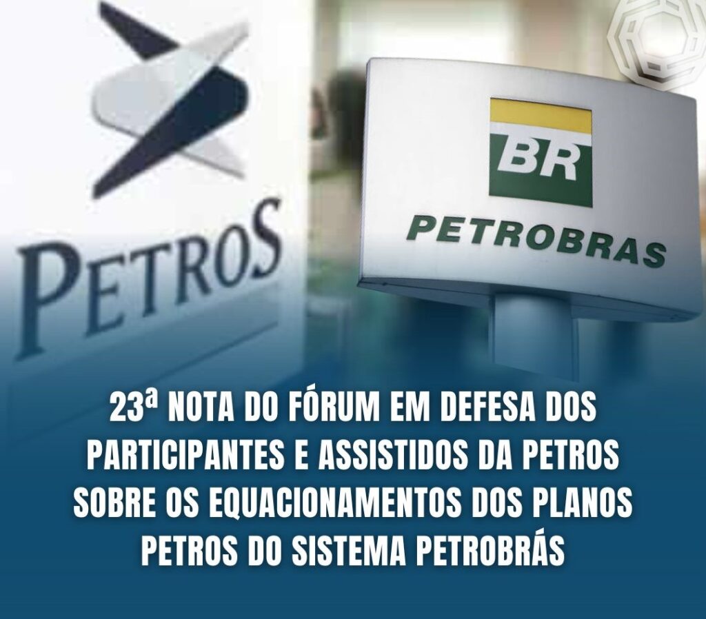 Nota das entidades que integram o Fórum em Defesa dos Participantes e Assistidos da Petros De acordo com a nova presidente da Petrobrás, Magda Chambriard, a solução dos equacionamentos dos déficits dos planos PPSP-NR e PPSP-R passa obrigatoriamente pelos…
