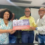 Representantes das entidades (AEPET-BA, ASTAPE-BA, Abraspet, Sindipetro-BA, CEPEs) receberam uma placa comemorativa alusiva a data oferecida pelo mandato da vereadora Marta Rodriges.