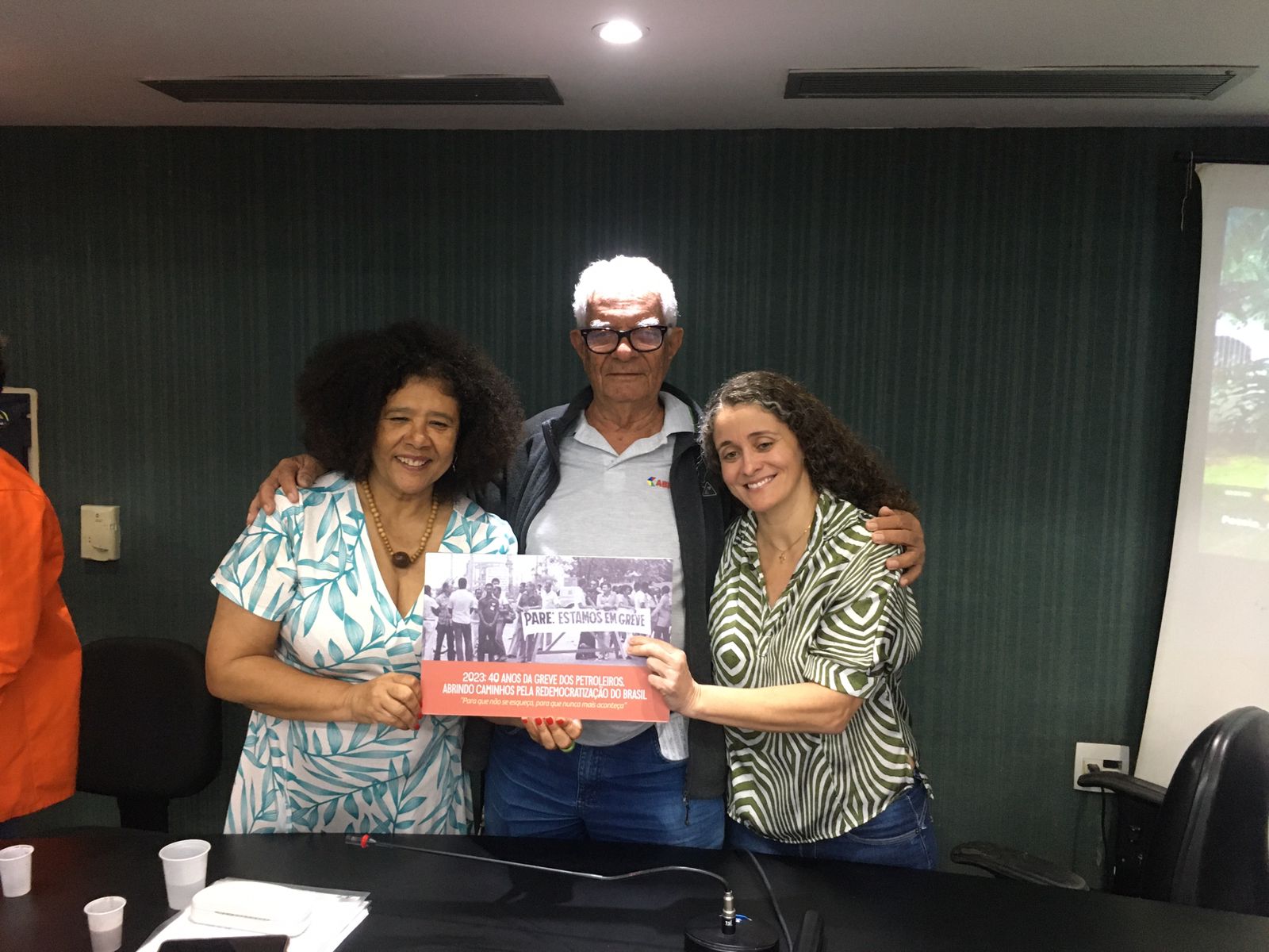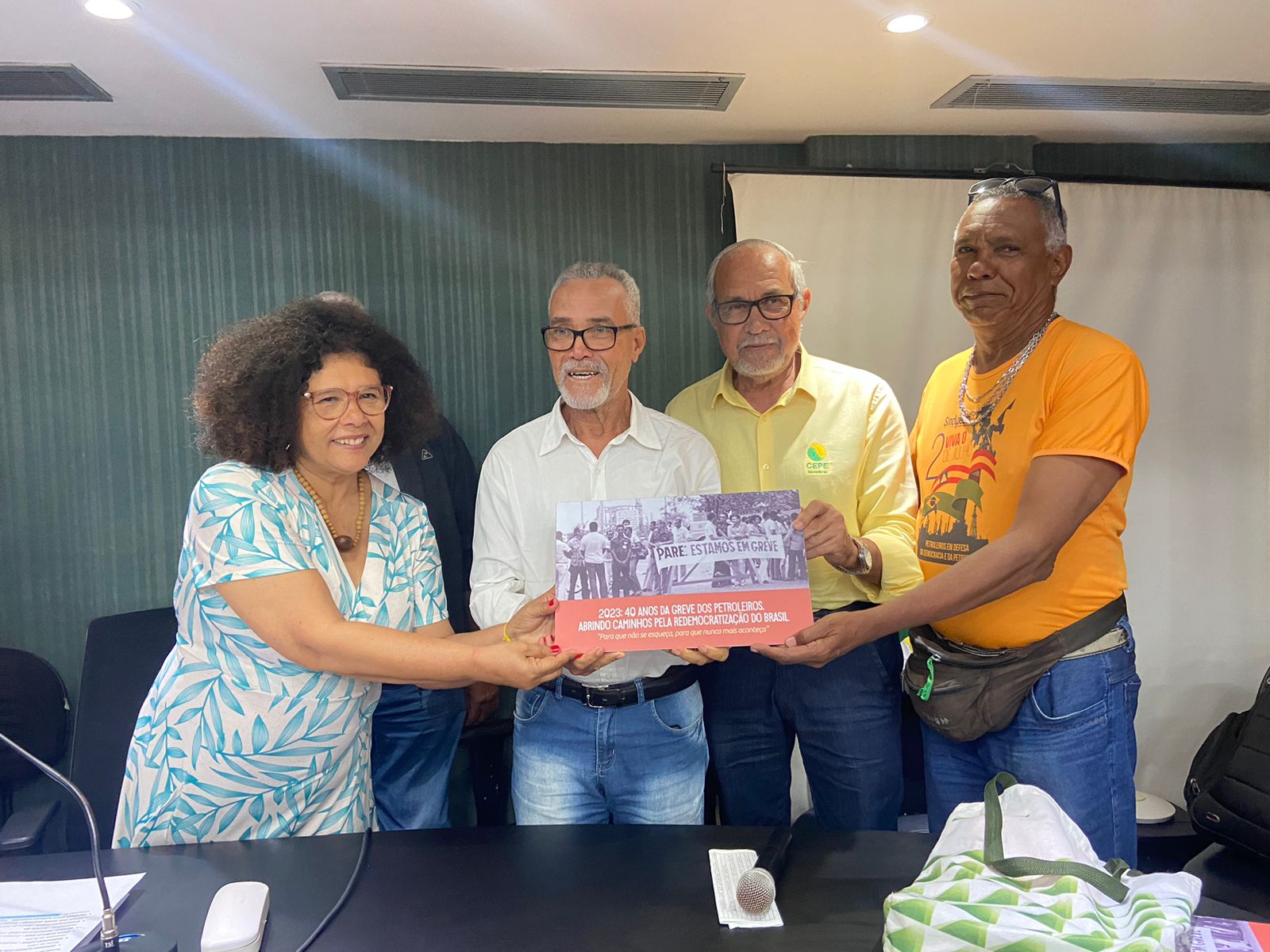 Representantes das entidades (AEPET-BA, ASTAPE-BA, Abraspet, Sindipetro-BA, CEPEs) receberam uma placa comemorativa alusiva a data oferecida pelo mandato da vereadora Marta Rodriges.