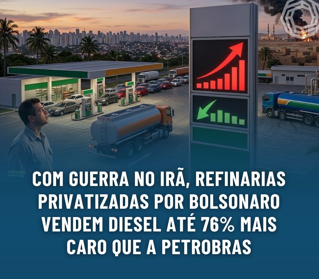 Entre 27 de fevereiro e 31 de março, período marcado pela escalada da guerra no Irã e pela disparada do petróleo no mercado internacional, refinarias privatizadas no governo Jair Bolsonaro (PL) elevaram o preço do diesel muito acima da Petrobras.