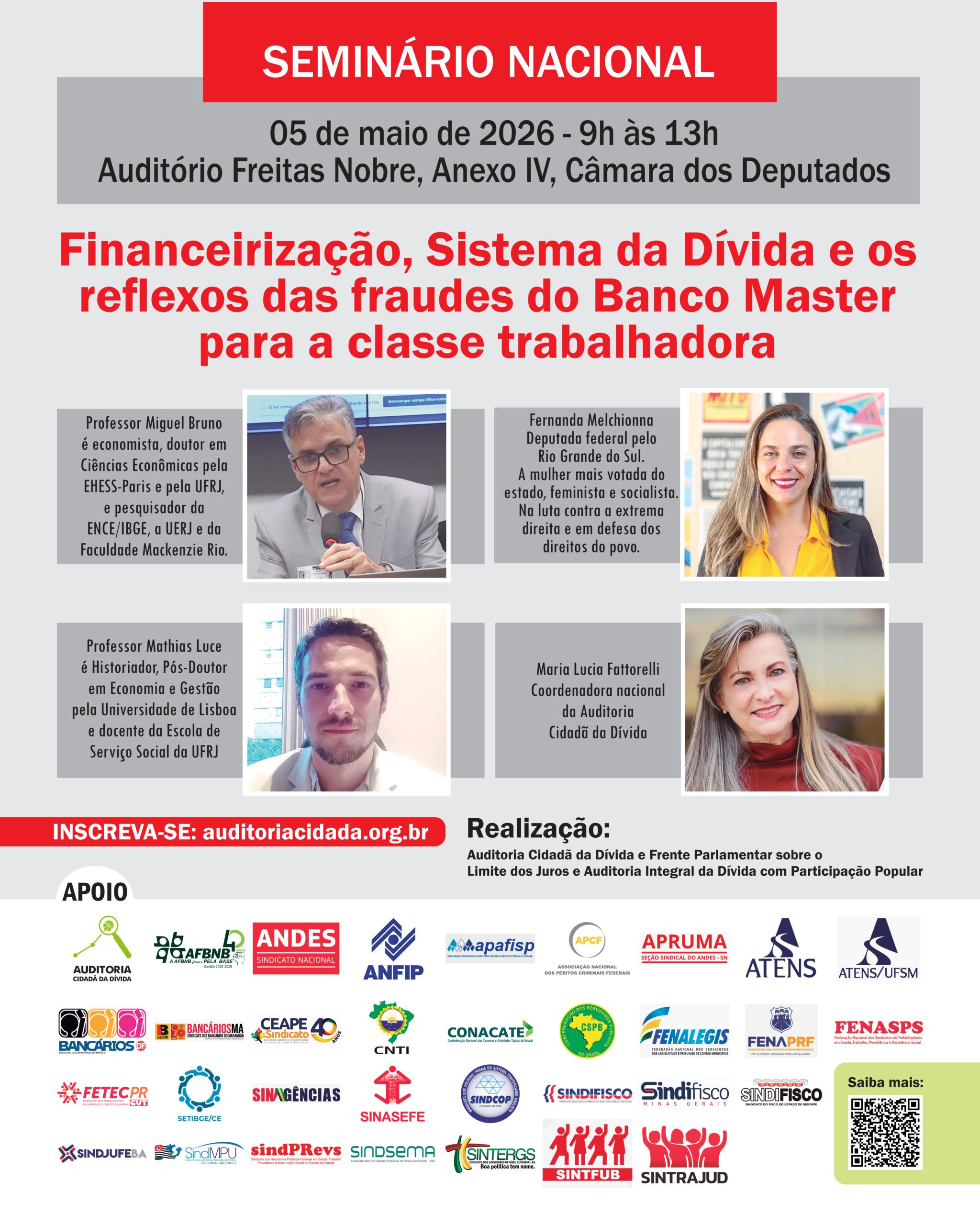 O evento será um espaço estratégico para aprofundar a compreensão sobre a financeirização da economia e seus impactos diretos sobre a classe trabalhadora, conectando o sistema da dívida às consequências concretas vividas pela população brasileira.
