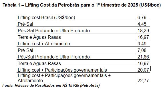 Façamos o cálculo: US$ 16,97 + US$ 6,5 (10% de um barril a US$ 65) = US$ 23,47. Sendo assim, há uma margem operacional antes de depreciação, impostos e despesas administrativas de US$ 41,53 por barril (US$ 65 – US$ 23,47). Se considerarmos mais US$ 15 de Depreciação, depleção e amortização e outros (último dado disponibilizado pela Petrobrás, referente à 2023) teremos uma margem operacional de US$ 26,53 por barril, isto é, 41% do valor de um barril a US$ 65. No 1º trimestre de 2025, esta mesma margem foi efetivamente de US$ 40,59 para o caso geral da Petrobrás, o que daria 54% de margem operacional em relação ao preço médio de venda do trimestre (US$ 75).
