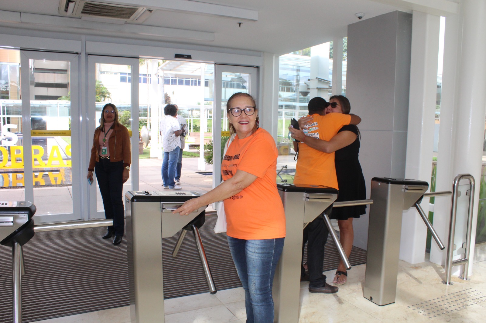 Com 12 anos de Petrobrás, Priscila Pereira Nunes, 39 anos, separada e um filho de quatro anos, não segurou a emoção quando entrou no prédio Torre Pituba. Mesmo em férias, ela decidiu participar do ato de reabertura com a esperança de começar um novo ciclo na Petrobrás e esquecer os últimos quatro anos de muito sofrimento, em especial, a partir de julho de 2019 quando começaram as transferências imotivadas. Nesse período, trabalhava no RH e foi muito difícil segurar as “bombas” dos colegas quando eram transferidos e passar pelo aprofundamento do assédio moral por parte dos gerentes que se “venderam” ao projeto de desmobilização da empresa, na gestão anterior.