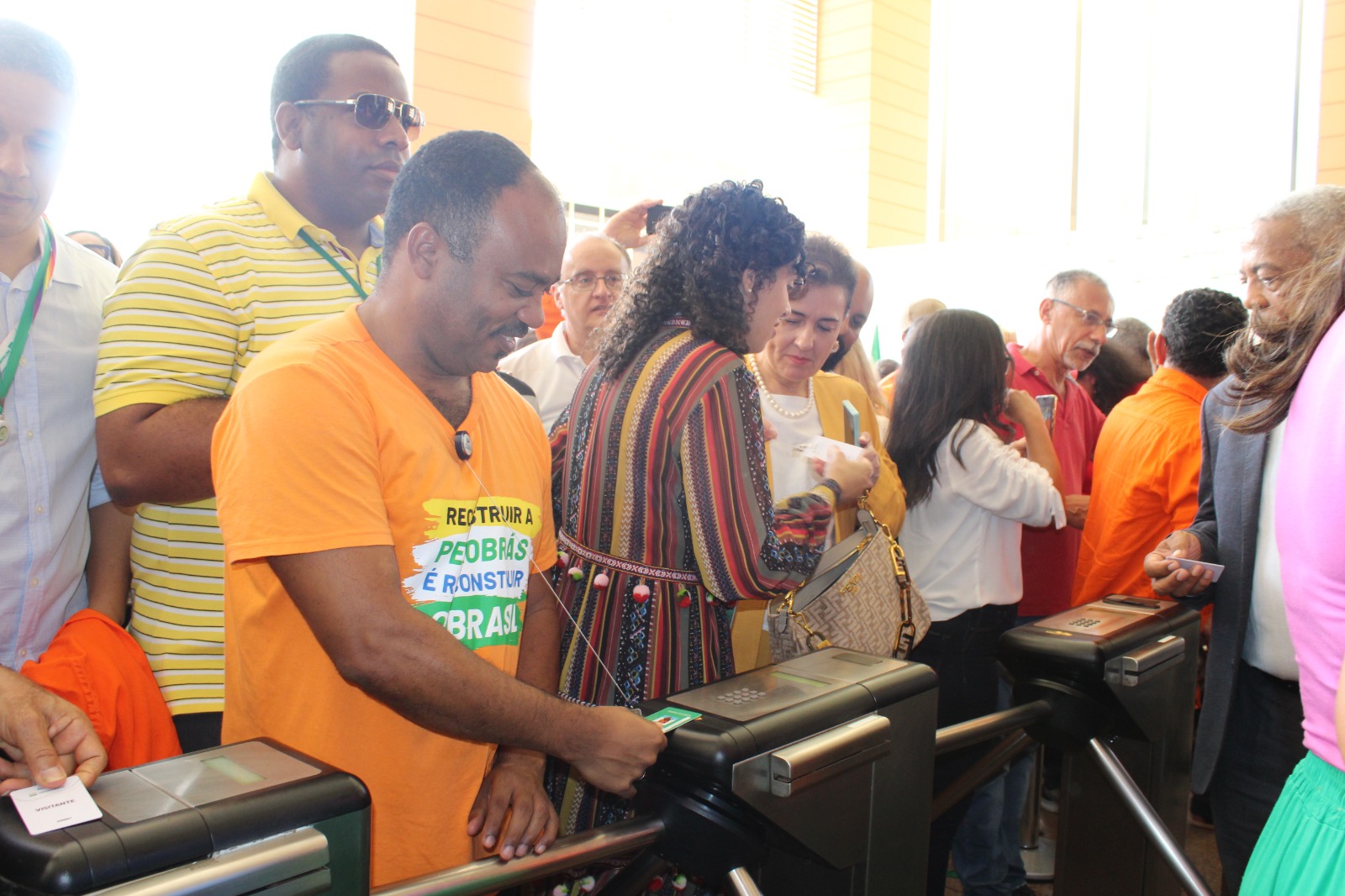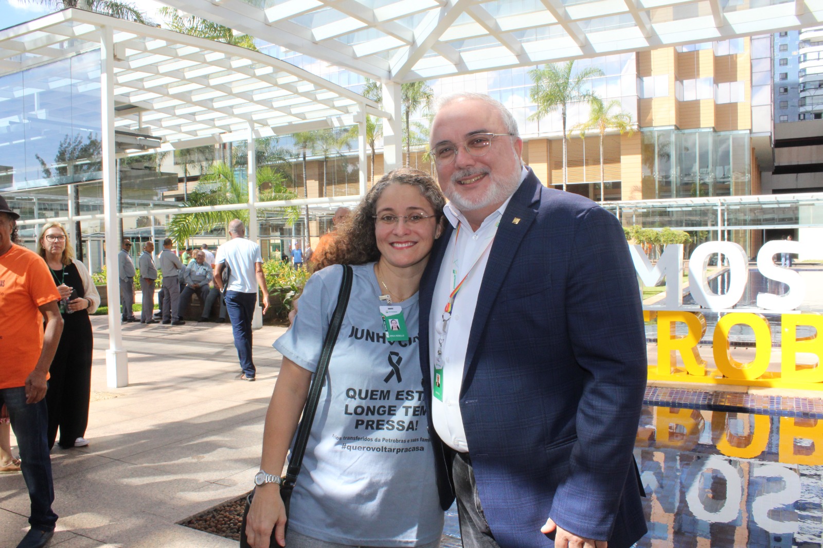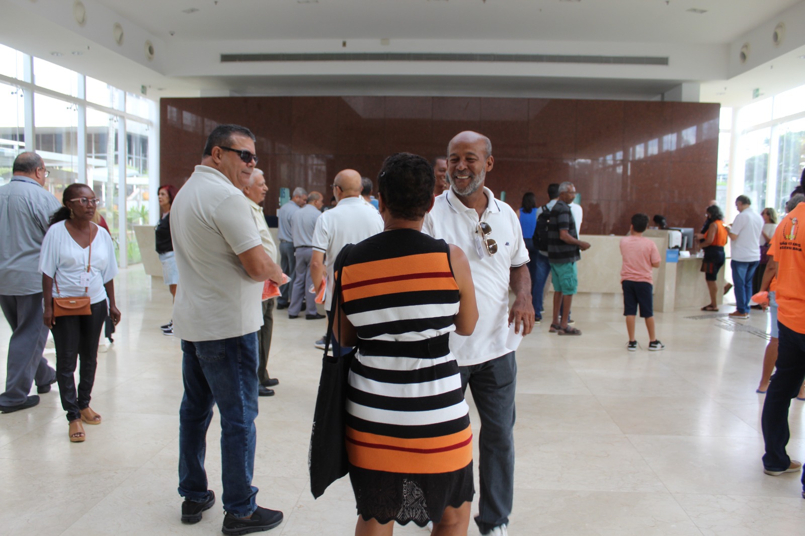 Centenas de aposentados e pensionistas, portando cartazes com as reivindicações mais urgentes da categoria: fim dos equacionamentos do fundo de pensão Petros, dos descontos abusivos da assistência médica AMS e a implementação de um posto avançado da Petros no Torre Pituba também participaram do ato. Foi a aposentada Lindomar que entregou um documento com as reivindicações ao presidente Prates.