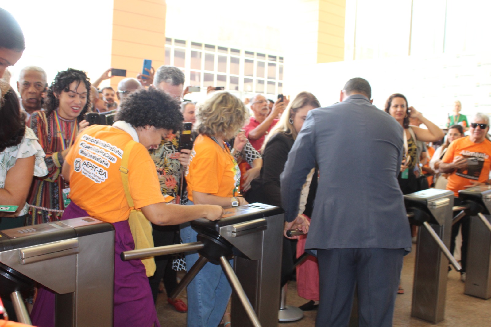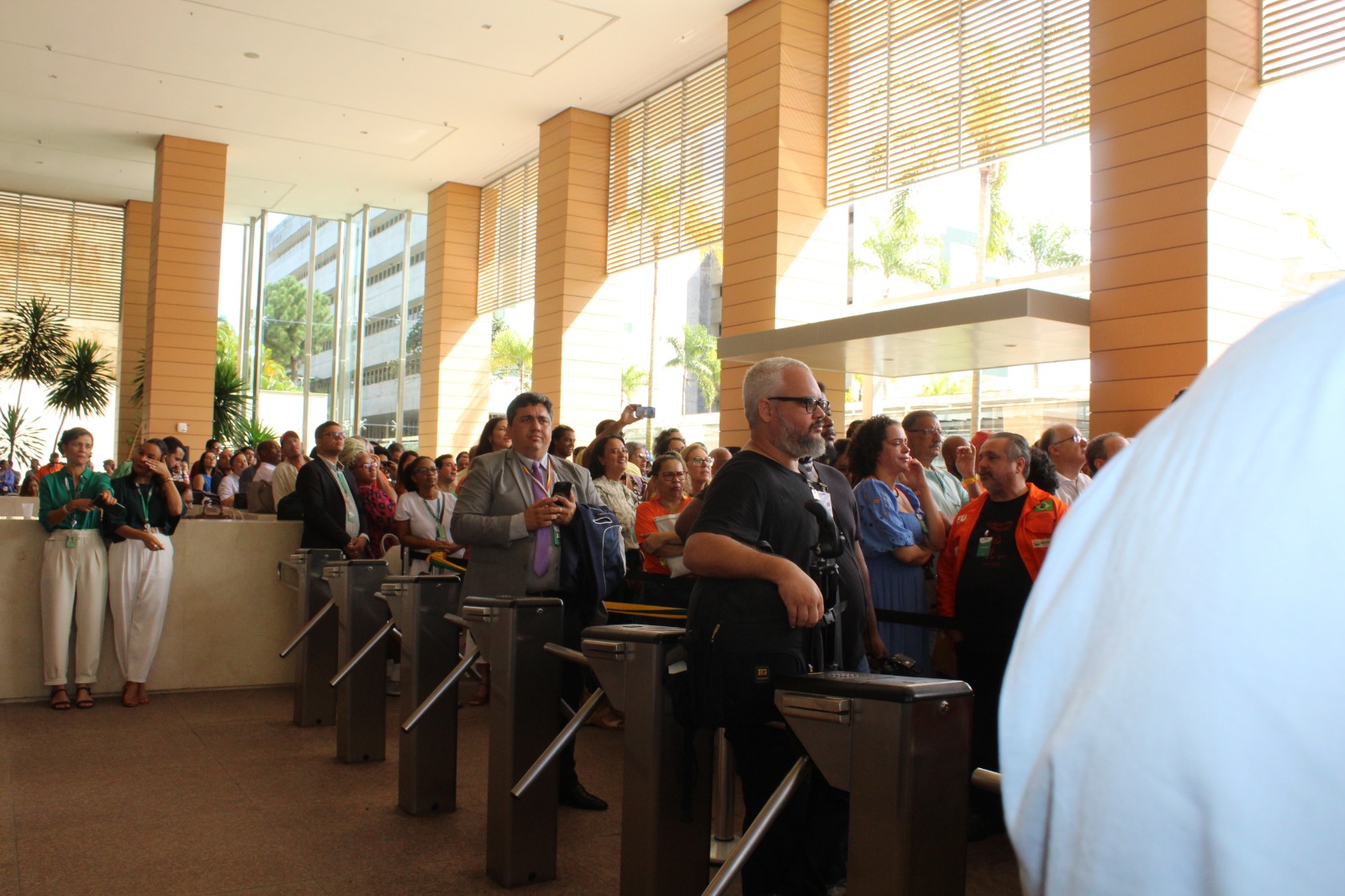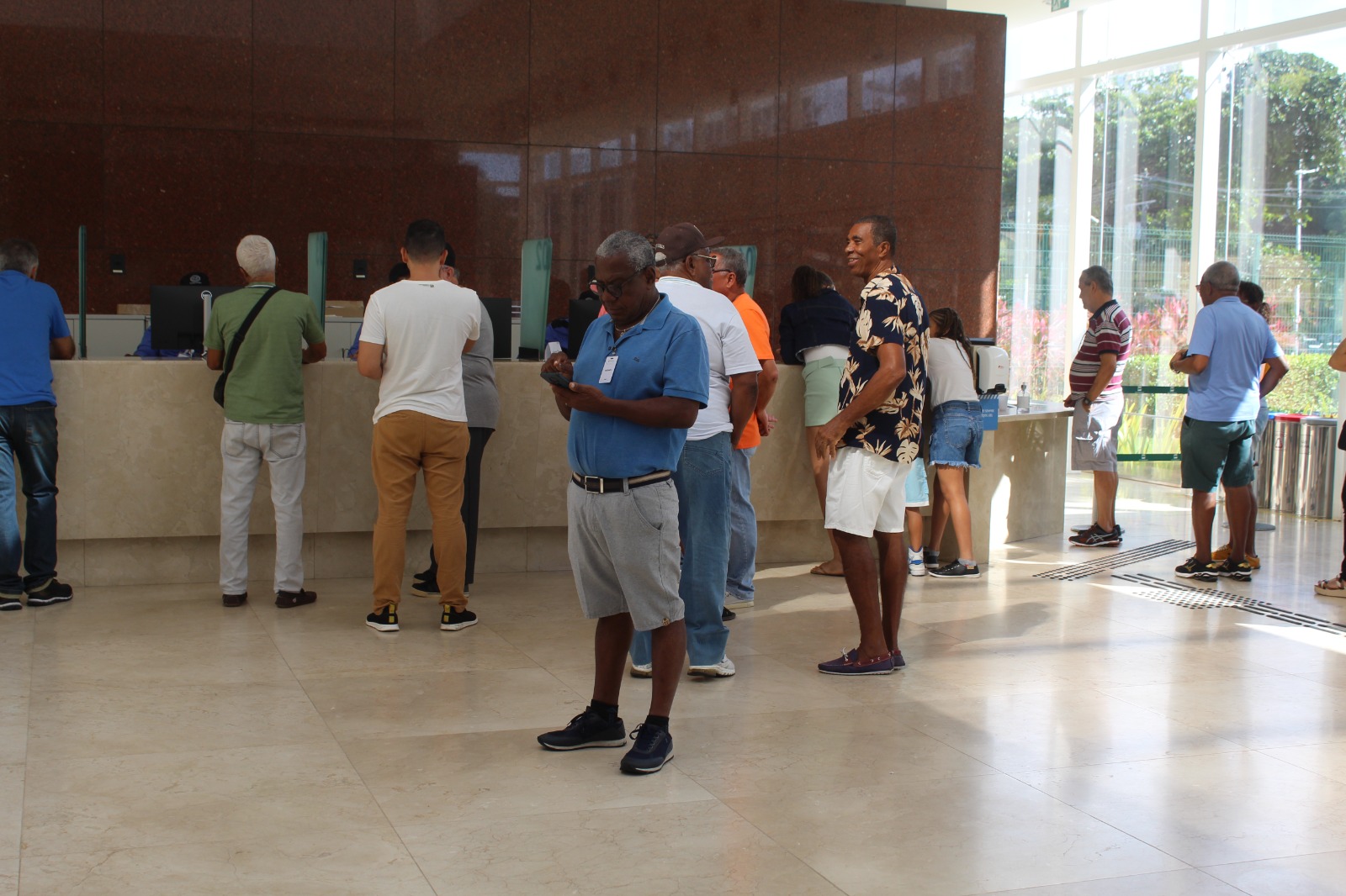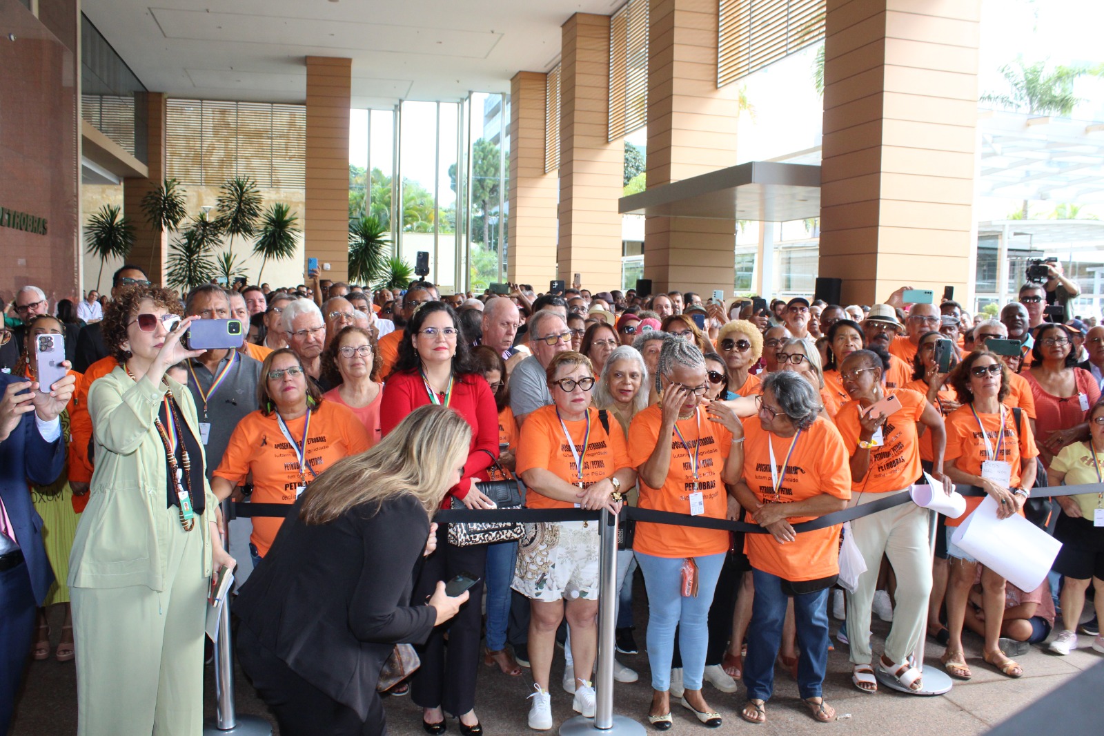 Centenas de aposentados e pensionistas, portando cartazes com as reivindicações mais urgentes da categoria: fim dos equacionamentos do fundo de pensão Petros, dos descontos abusivos da assistência médica AMS e a implementação de um posto avançado da Petros no Torre Pituba também participaram do ato. Foi a aposentada Lindomar que entregou um documento com as reivindicações ao presidente Prates.