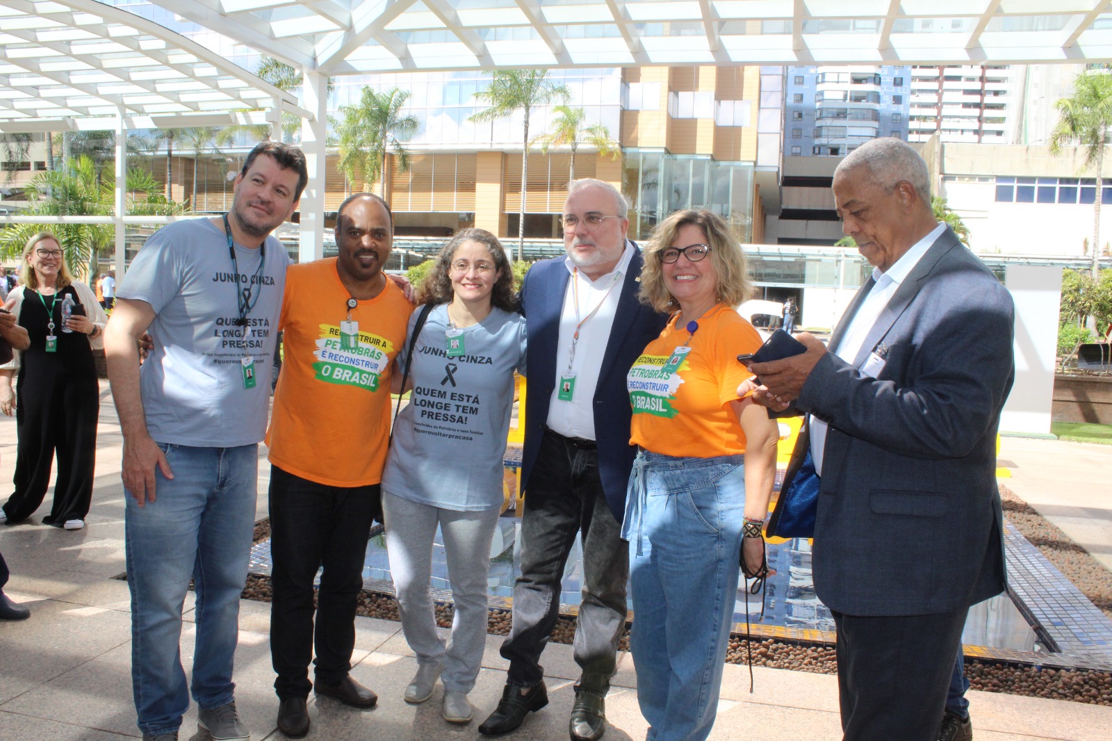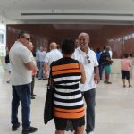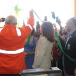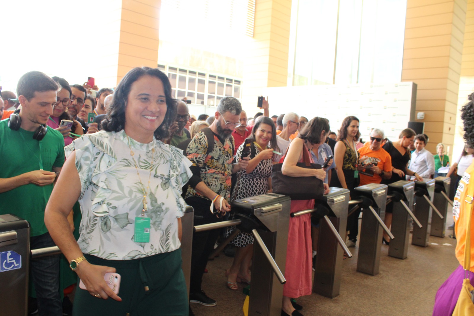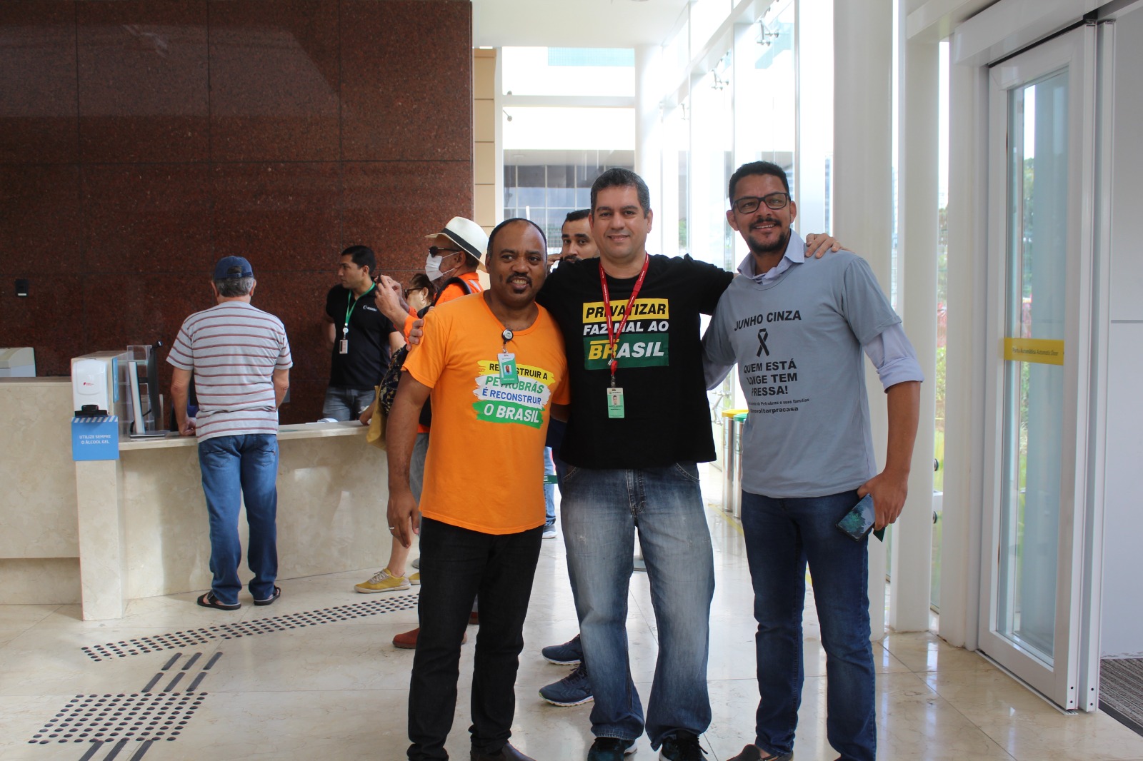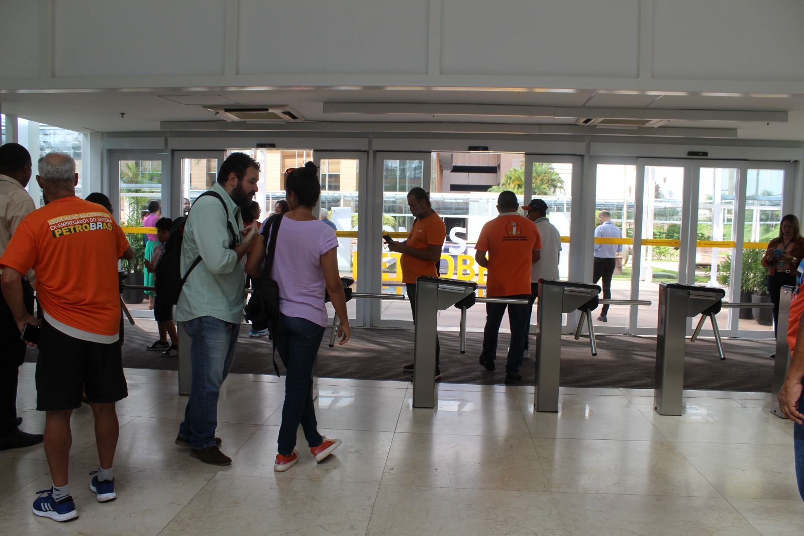 O presidente da AEPET-BA, Marcos André, a diretora de Comunicação da entidade, Érika Rebello Grisi, e a Assessoria Jurídica recepcionaram os petroleiros (as). Érika estava com a camisa da campanha “Quem está longe tem pressa”, que busca o fim das transferências e do bate/volta. Durante a reabertura, a Associação buscou apoio da atual gestão, pedindo urgência para resolver o problema que atinge cerca de mil petroleiros (as) em todo o país, inclusive a Bahia.