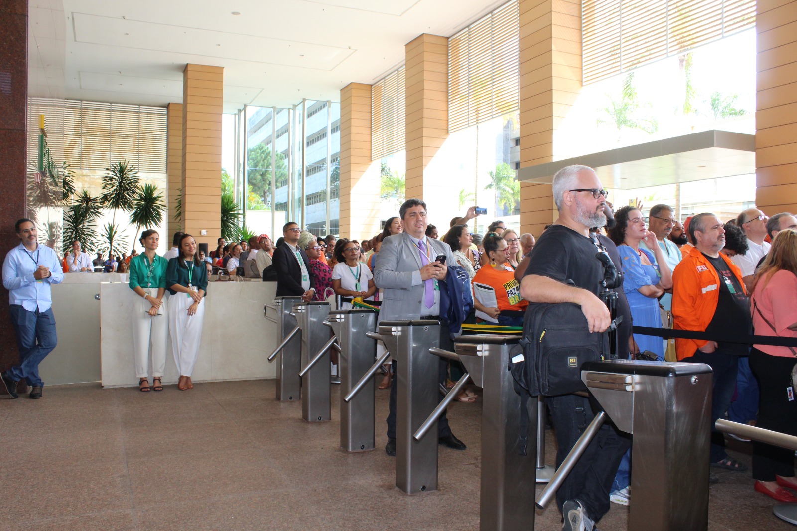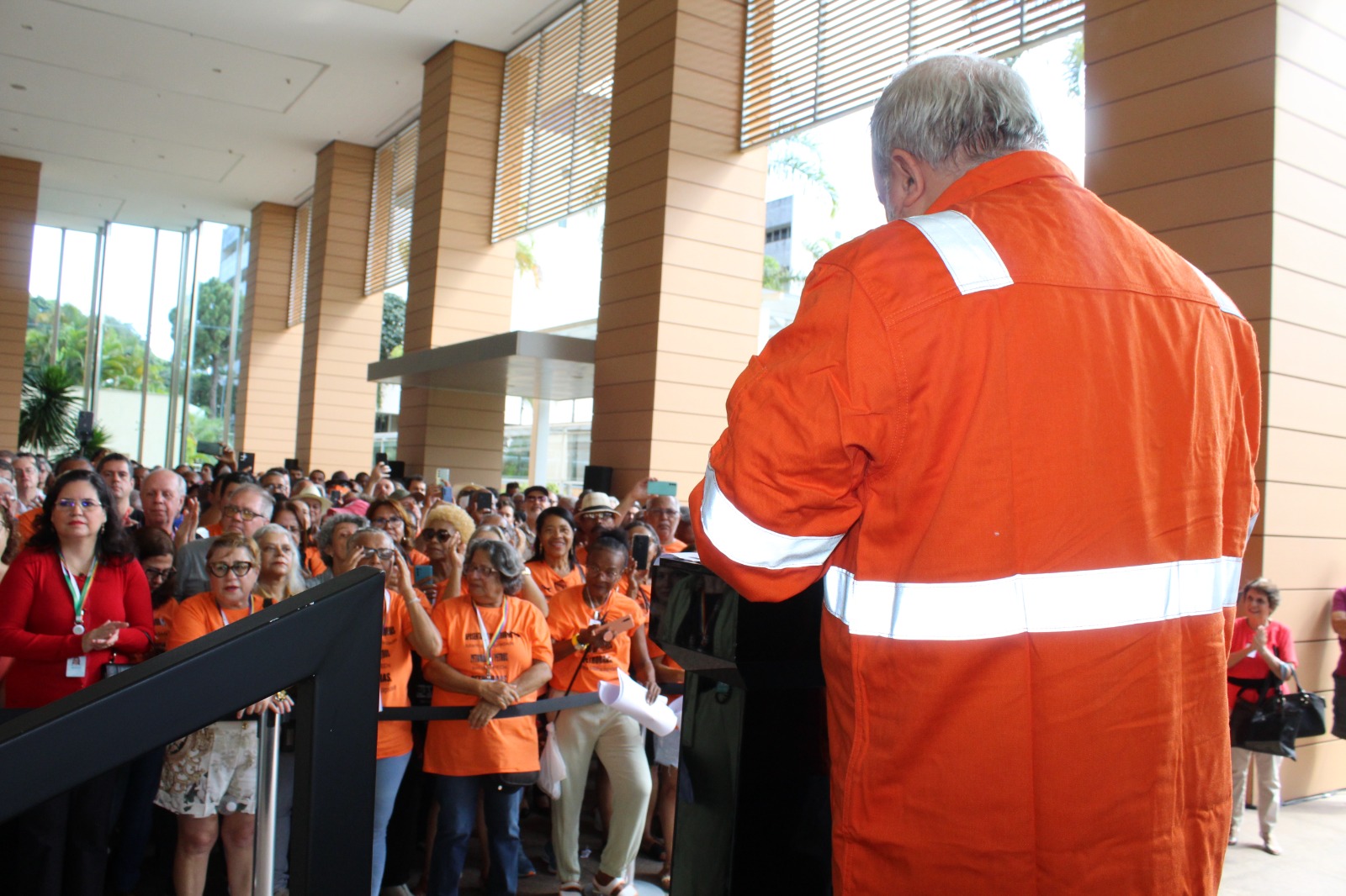 O ato desta segunda-feira, no andar térreo do Torre Pituba, foi apenas para a força de trabalho e contou com a presença do presidente da Petrobrás, Jean Paul Prates, gerentes e diretores da empresa. A mesa foi composta pelo presidente Prates, a diretora de Assuntos Corporativos, Clarice Coppetti e o diretor Financeiro e Relacionamento com Investidores, Sérgio Caetano Leite. Segundo Prates, nesse primeiro momento 450 empregados (as), dos 2.500 petroleiros diretos que estavam trabalhando quando a sede administrativa foi fechada, estão voltando.