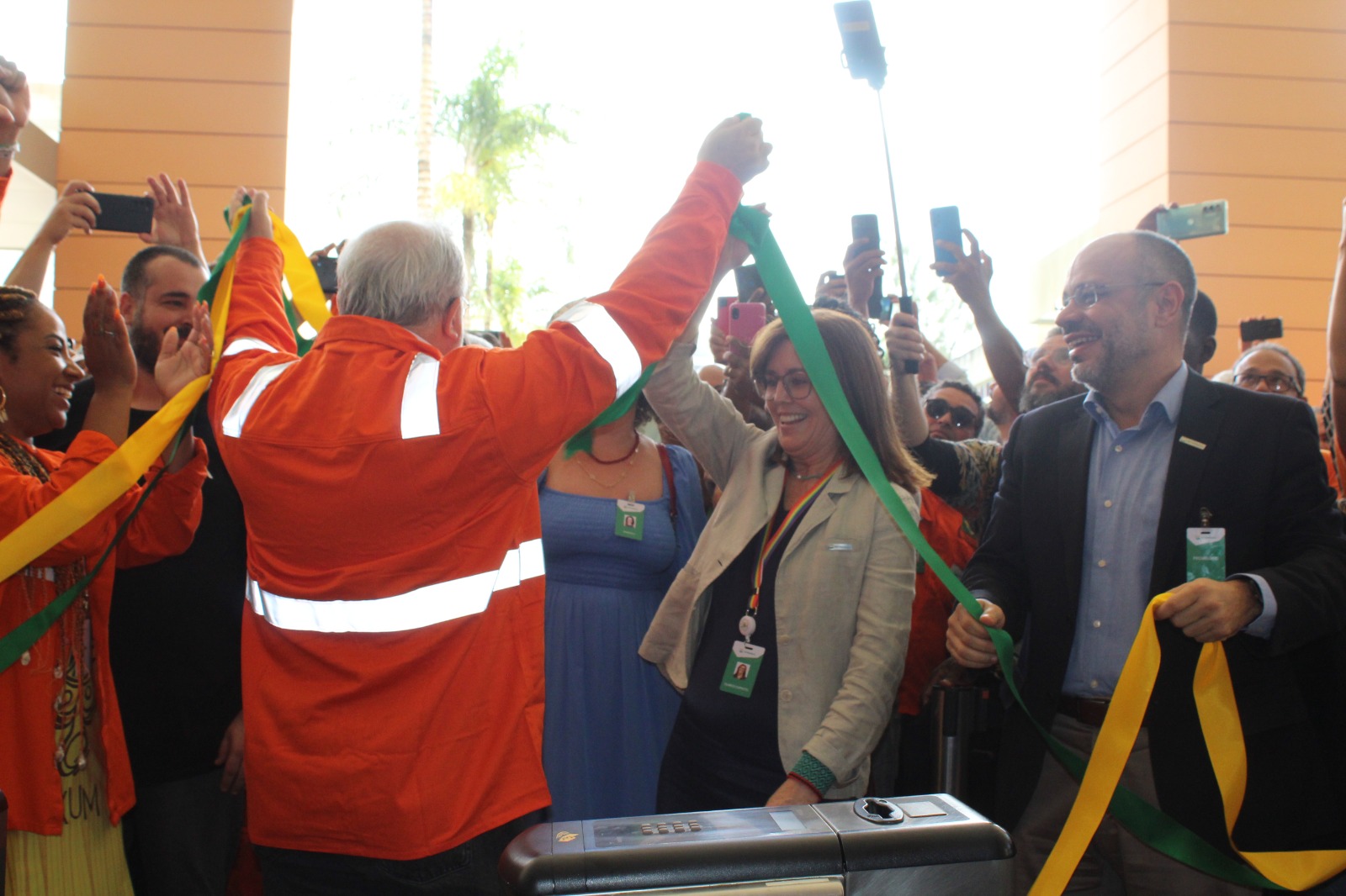 O ato de abertura, com a faixa cortada e contagem regressiva, teve como música de fundo a canção “Casa”, de Lulu Santos, em seguida centenas de trabalhadores atravessaram as catracas para acessar as estações de trabalho. Por enquanto, apenas dois andares, dos 22 do prédio, serão ocupados pela força de trabalho. O Torre conta com 224 estações de trabalho por andar, mais de 2.600 vagas de estacionamento, heliponto, e poderia abrigar quase cinco mil postos de trabalho.