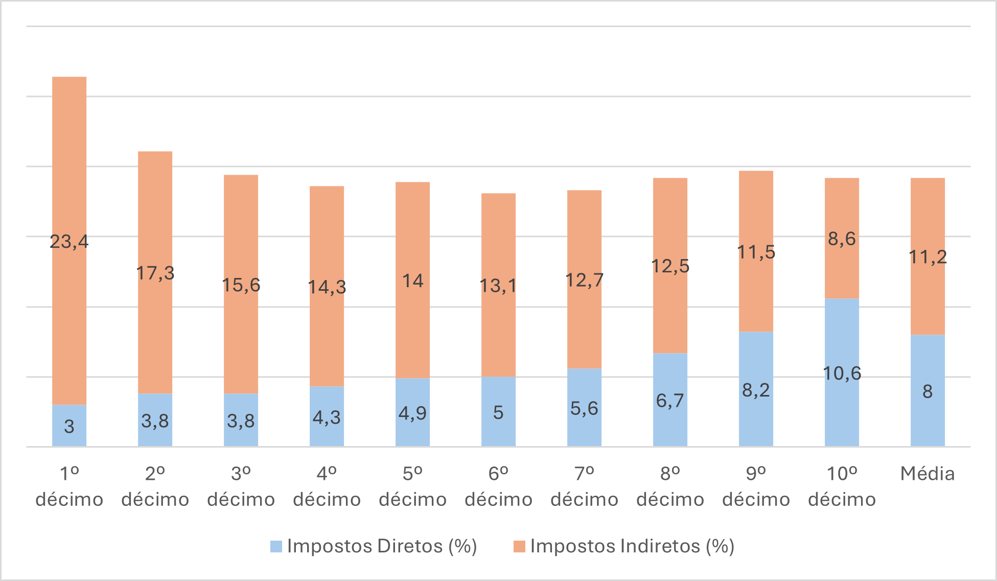 Fonte: Texto para Discussão do IPEA “Tributação Indireta: Alíquotas Efetivas e Incidência sobre as Famílias” (2022)