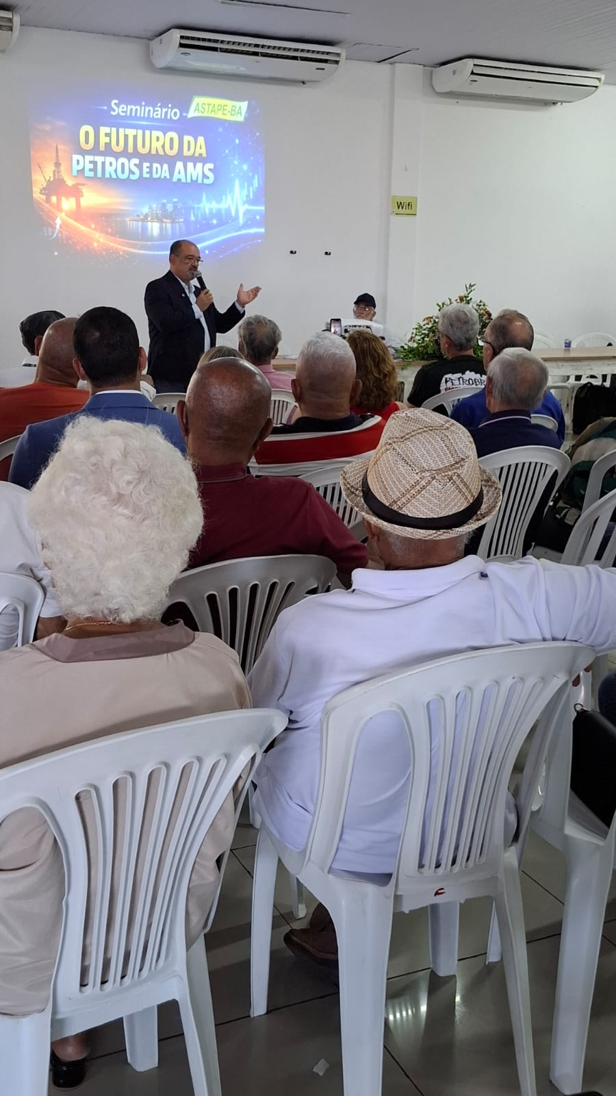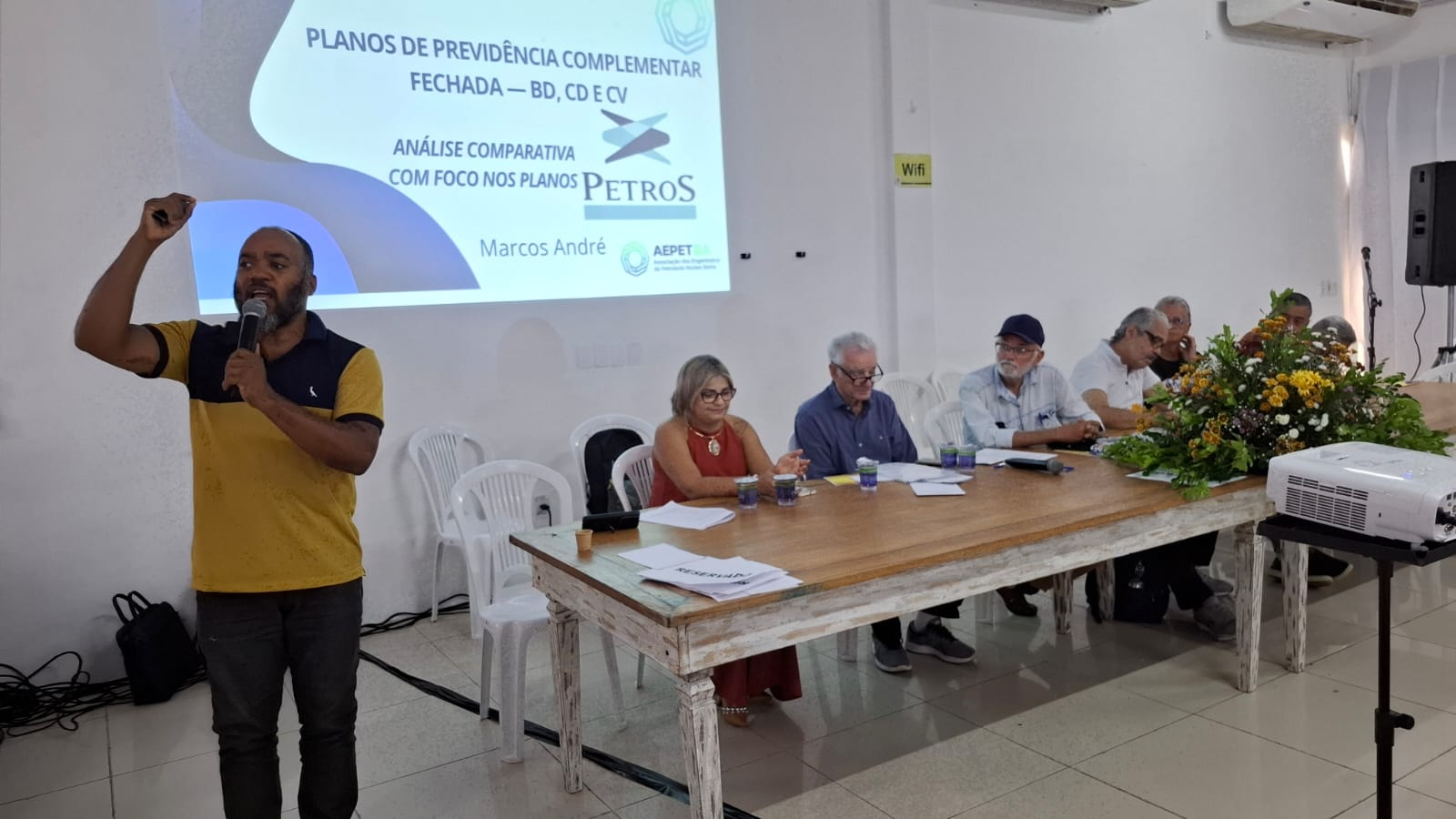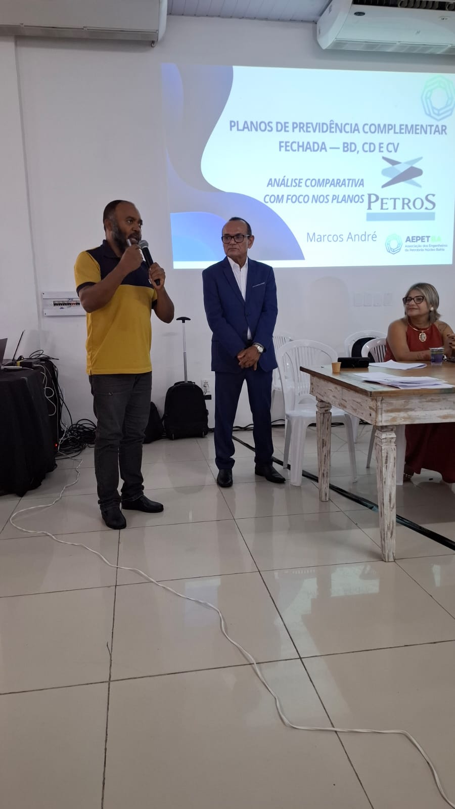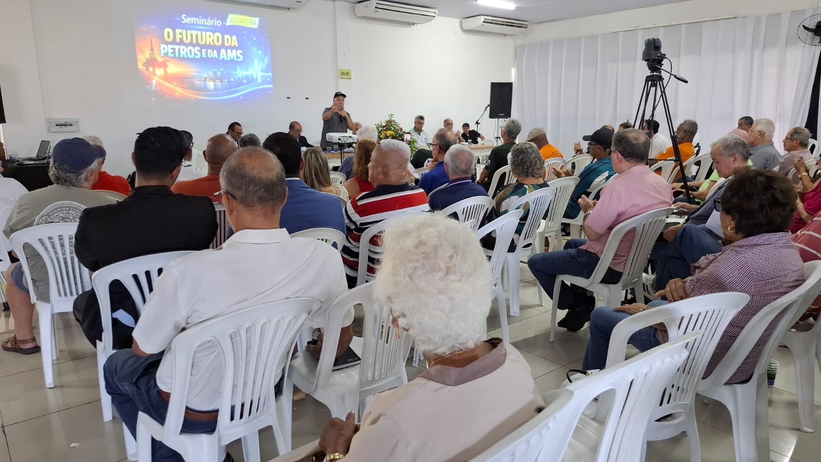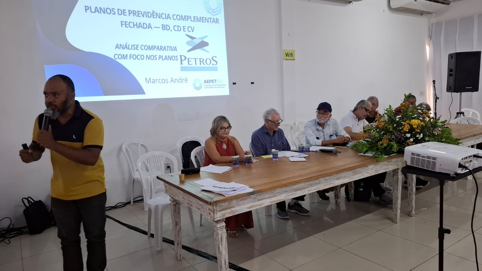 Na quarta-feira (08/04), o presidente da AEPET-BA, Marcos André, participou do seminário “O Futuro da Petros e da AMS”, promovido pela ASTAPE-BA, no Clube 2004, em Armação, em Salvador. O evento reuniu trabalhadores da ativa, aposentados e pensionistas do sistema Petrobrás, consolidando-se como um importante espaço de debate e mobilização.